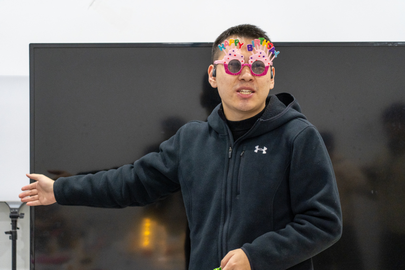 活动现场氛围感拉满:暖融融的灯光搭配圣诞元素装饰与彩色气球,瞬间驱散冬日寒意;定制生日蛋糕上的烛火轻轻摇曳,映照出每张笑脸的真挚与喜悦。书院精心准备了香甜绵密的蛋糕、满含心意的手写祝福卡,更有轻松解压的互动小游戏接连上演,大家踊跃参与、默契配合,现场掌声与笑声不断,热闹又温馨。当师生共同唱响生日歌,温馨的旋律萦绕全场,将活动氛围推向高潮,所有疲惫与忙碌都在这一刻化为满满的幸福感。